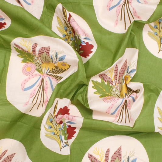 Cotton Block Print Lawn Floral Frame Spring Green ½ yd
