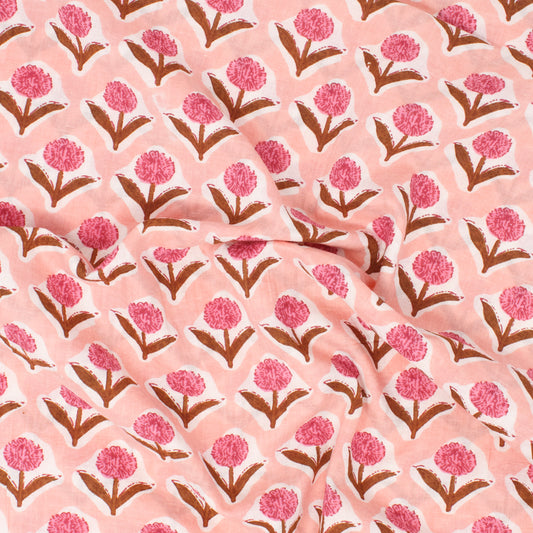 Cotton Block Print Lawn Mini Carnation Pink Peach ½ yd