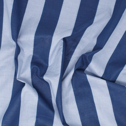Cotton Block Print Lawn Stripe Navy Grey ½ yd