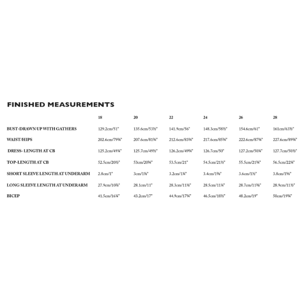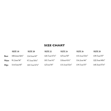 Sizes: 18-28 included; Bust: 42.5" - 55.", Waist: 36" - 48.5" (also available in size 6-18 here).