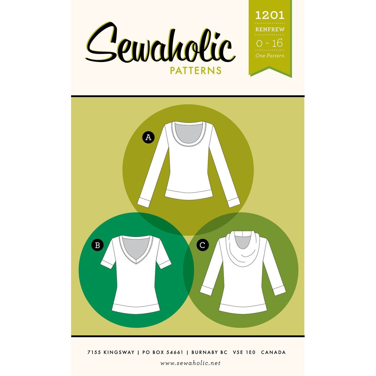 The Renfrew is a classic basic tee with three sleeve length options, and scoop, v-neck and cowl neckline variations. The body and sleeves are finished with banded hems for a professional look. Mix and match the different pattern variations for a top suited to your style.