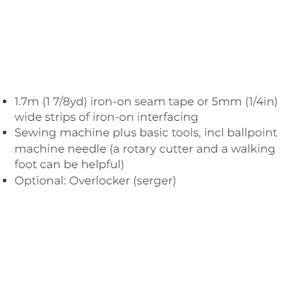 Recommended Fabrics: Medium-weight drapey knit fabrics with at least 20% stretch, such as Hacci knit, sweater knit, jacquard knit, stretch velvet, ponte, interlock, lighter weight French terry.