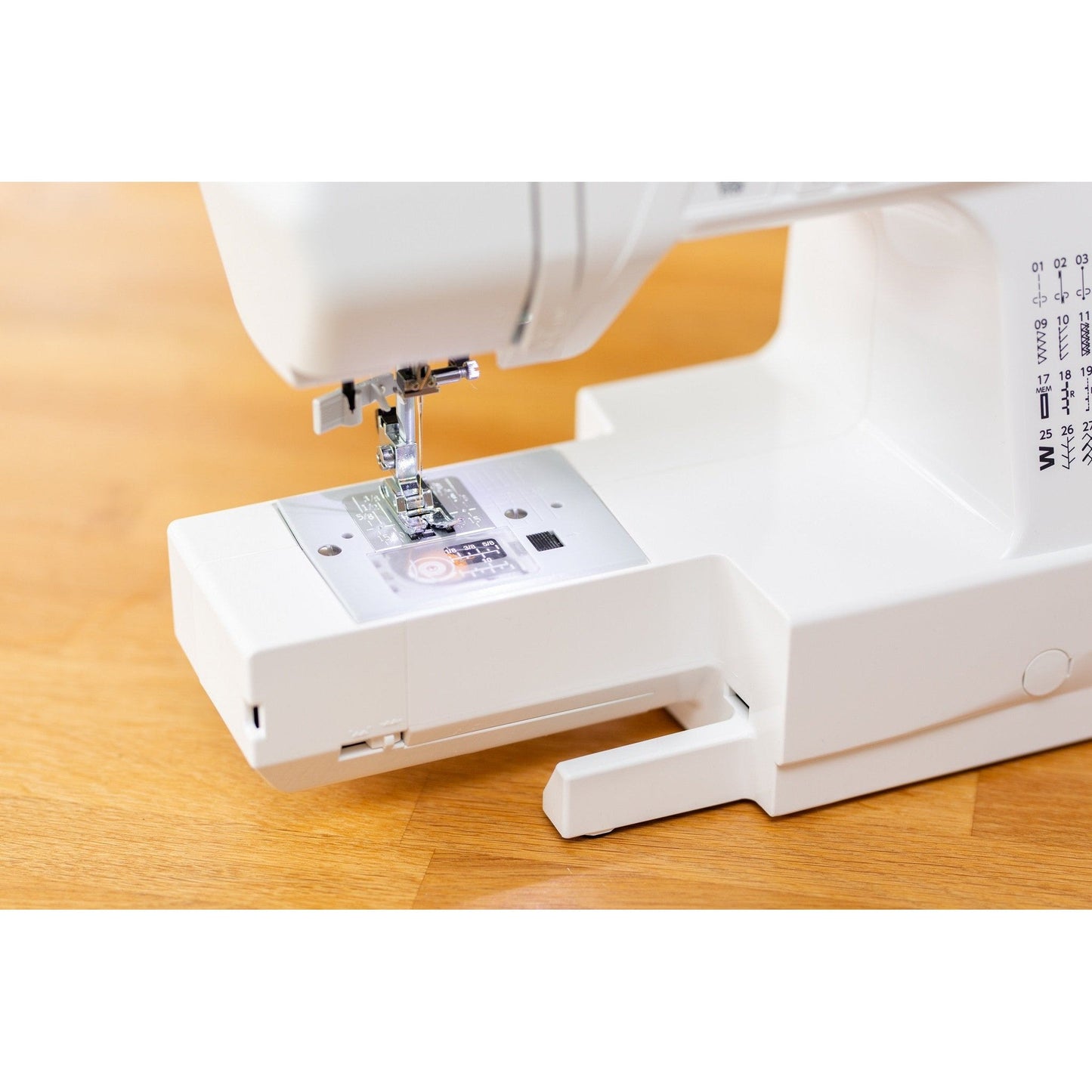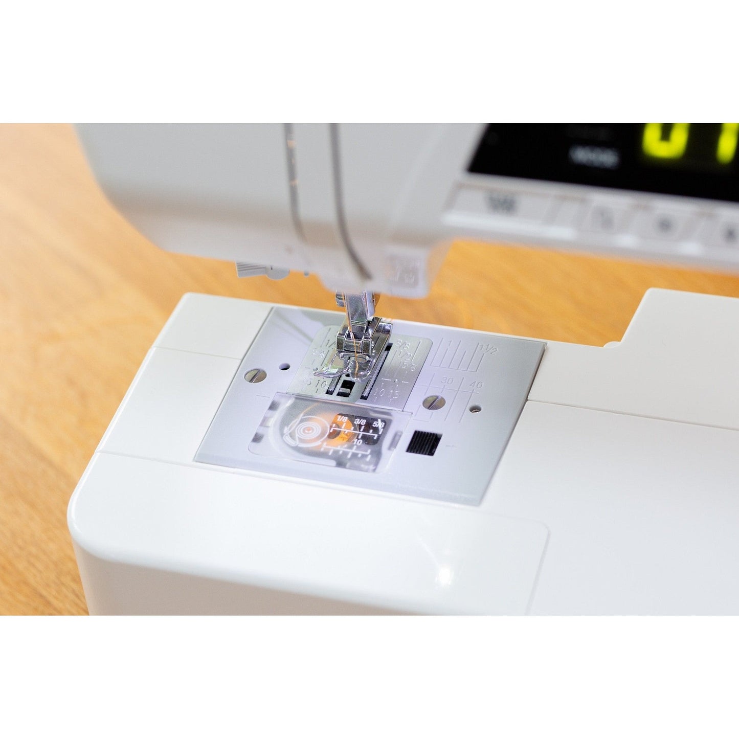 Using this machine, you'll find an easy to set up top loading bobbin with a clear plate thats easy to check your bobbin thread, automatic lock stitch, needle up/down button, slider speed control, 30 stitches and speedy sewing with 820 stitches per minute.