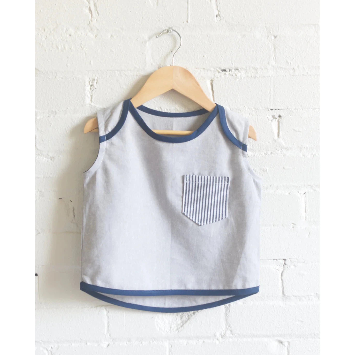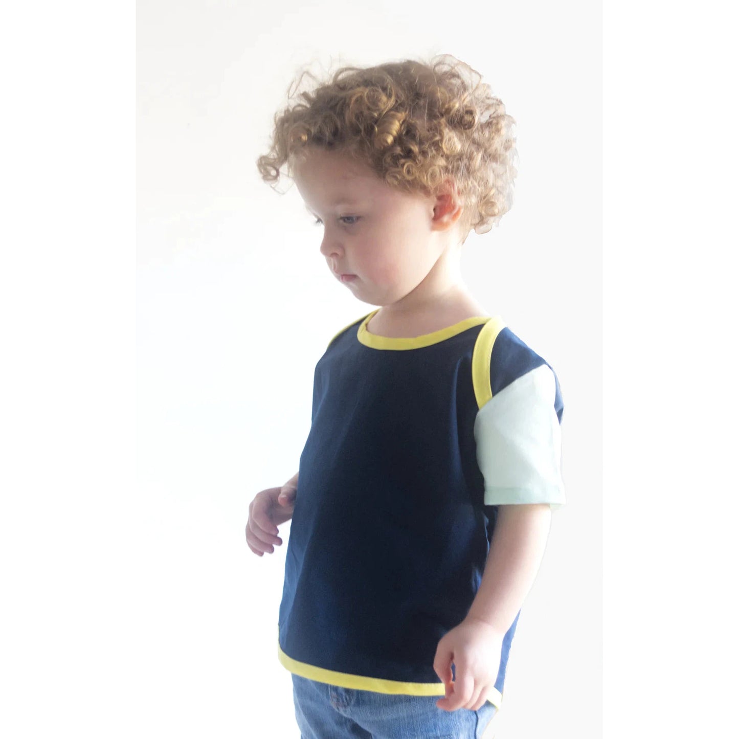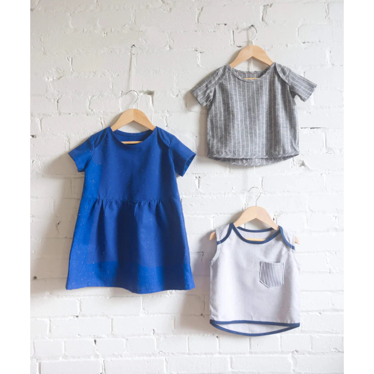 This versatile top is perfect for your little one. Make your own bias tape to customize the final look. Plus, choose between short sleeves or a tank top, as well as a version with or without a pocket.
