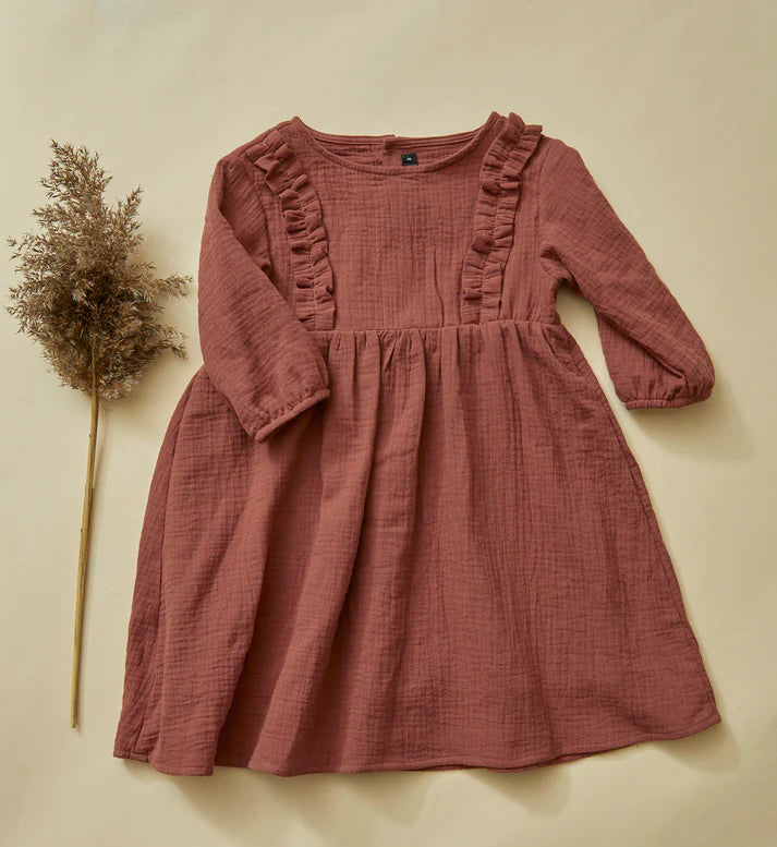The Cygne Dress is an adorably stylish dress with two front ruffles and buttons in the back. The Cygne is perfect for dressing up on a special occasion or equally cute as an everyday look.