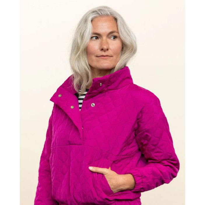 The Pogonip Pullover is the perfect all year round layer for fun outside adventures! The pullover is unlined and features a sport collar, and a snap or button half front placket. On a warm day the Pogonip can be packed away with the optional packable pocket with strap. The Pogonip works with a wide range of fabrics and is designed for both woven and stable knit fabric.