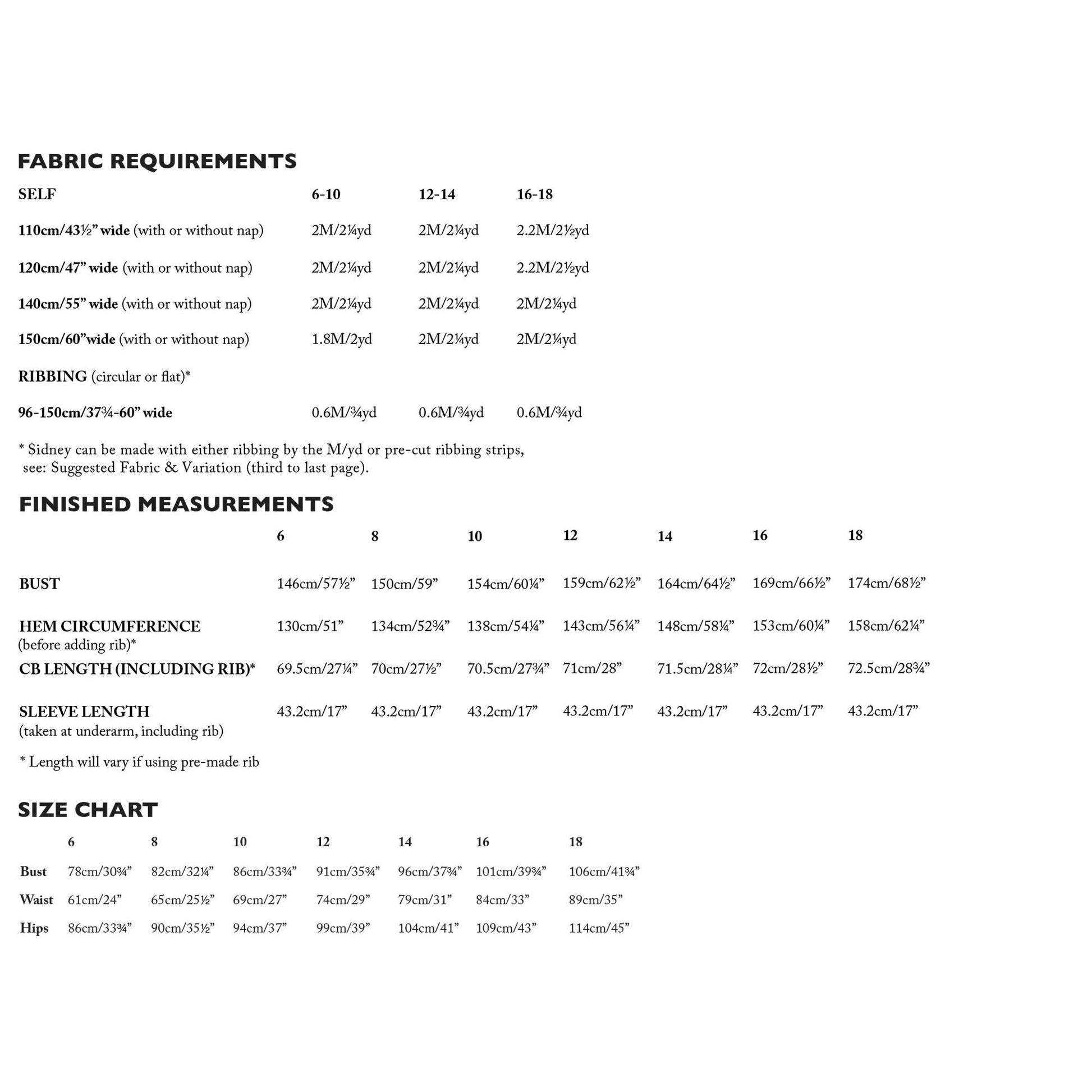 Recommended Fabrics: To get the structured boxy shape of Sidney, choose a medium to heavy weight fabric like jersey loopback and sweat shirting. Ribbing for the neckline, cuffs and hem.