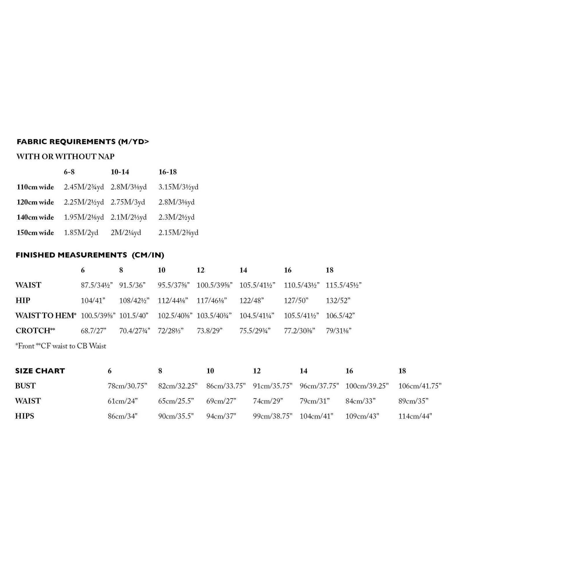 Sizes: 6-18 included; Bust: 30.75" - 41.75", Hip: 34" - 44"