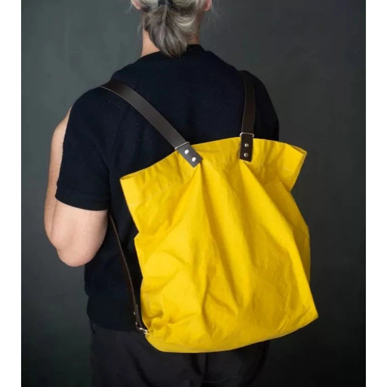 The Costermonger is a tote bag with a twist! This tote can be worn as a backpack so you can fill it up with all your goodies and keep your hands free. The pattern includes instructions on making the bag with webbing or leather straps.