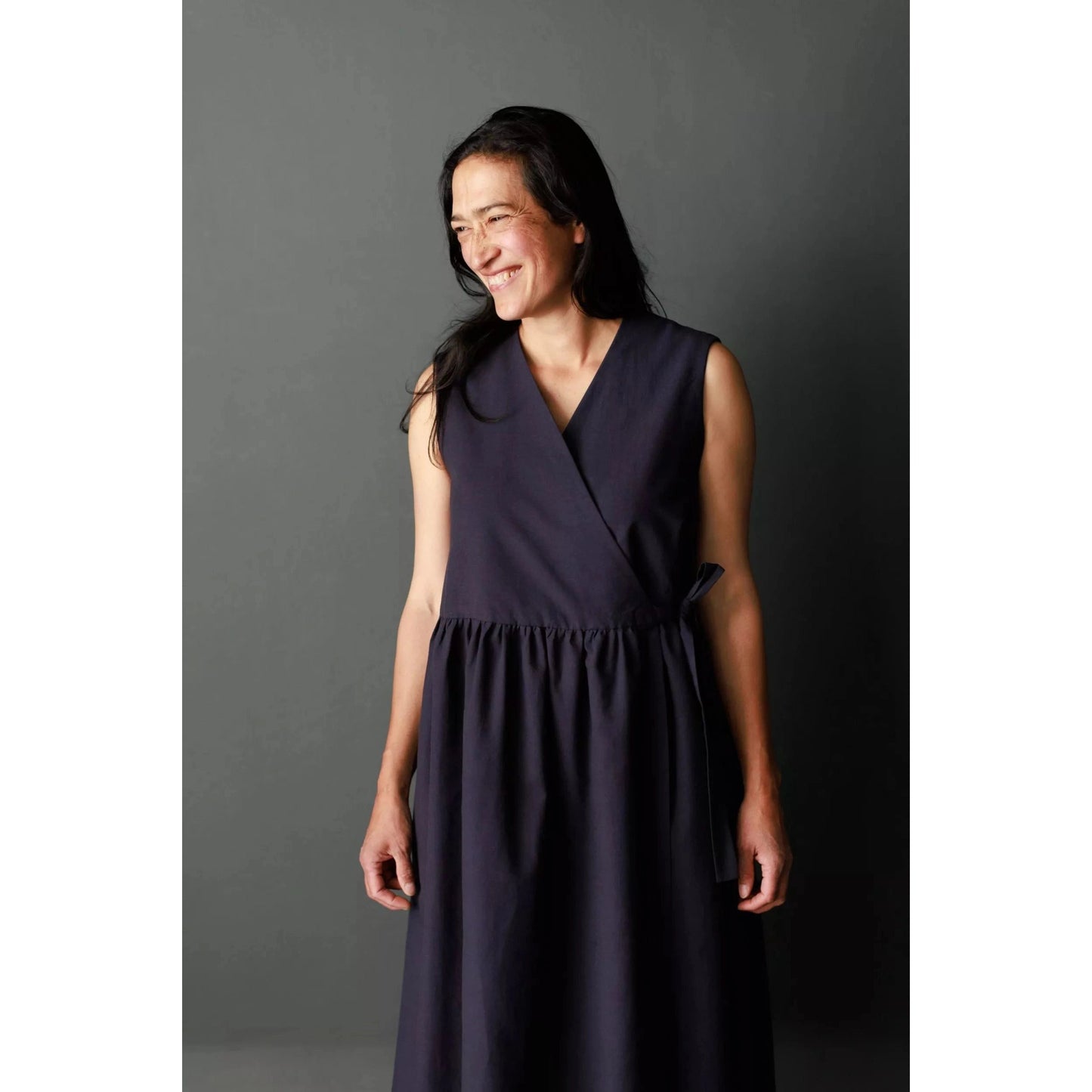 The Etta is a simple, relaxed wrap dress with a lined bodice and inseam pockets that you can choose to make sleeveless or with short or three quarter length sleeves. The Etta includes inner and outer ties so you can decide how loose to style the wrap, although the Etta is designed not to be fitted at the waist.