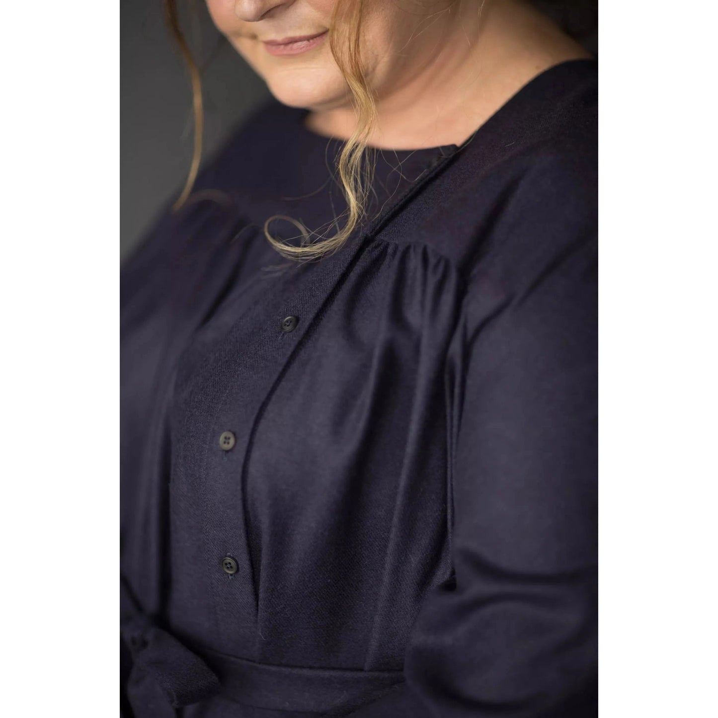The Omilie is a smock style top or dress featuring patch pockets and in-seam pockets (dress only). Both options feature button fastenings in the front and can be sewn with either short or long sleeves.