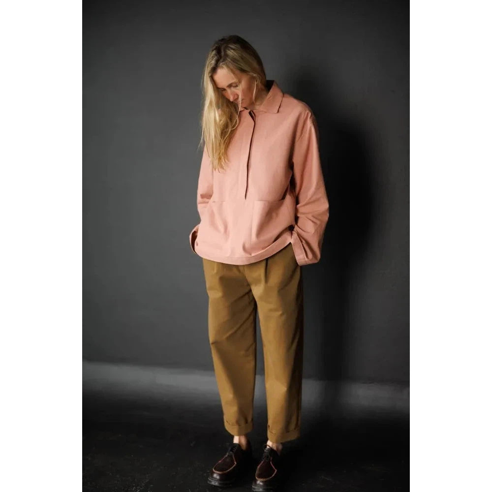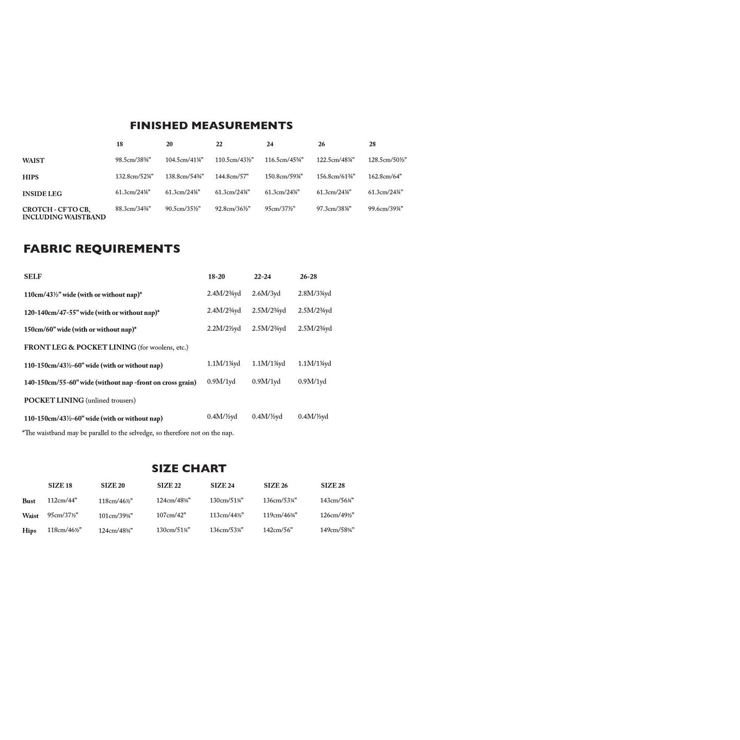 Recommended Fabrics: Mid-heavyweight cotton canvas, 8oz organic sanded twill, corduroy, light-medium weight woollens and 7-10oz denim, lighter weight cloths like linen and tencel/linen will give you a softer silhouette.
