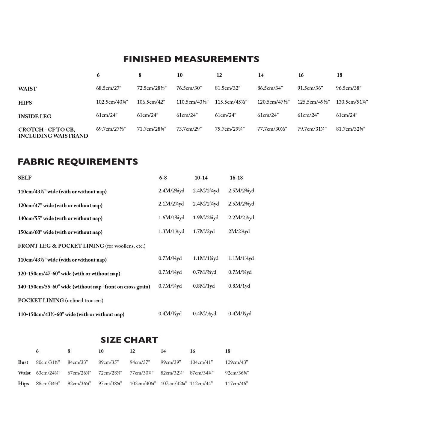 Sizes 6-18, 44-60” wide = 0.5 yards