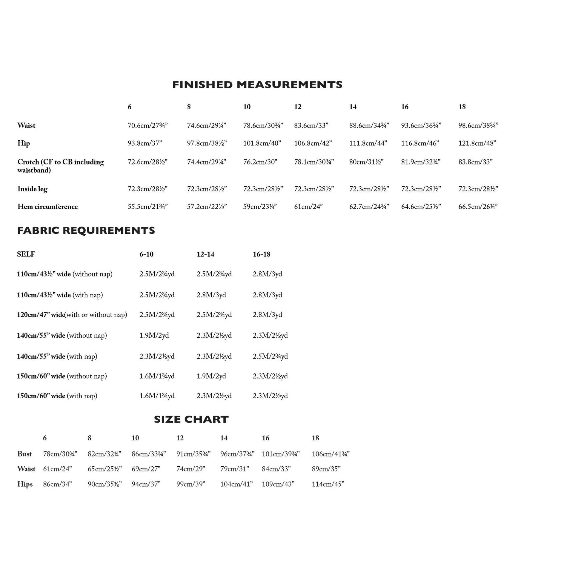 Sizes 12-18, 44 wide (with nap) = 3 yards