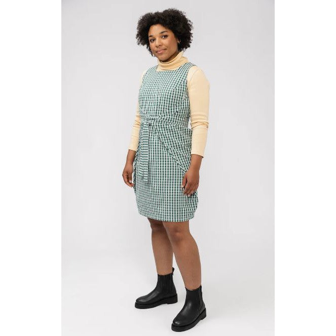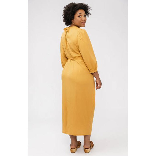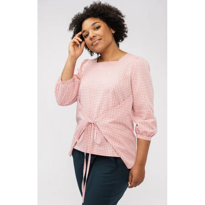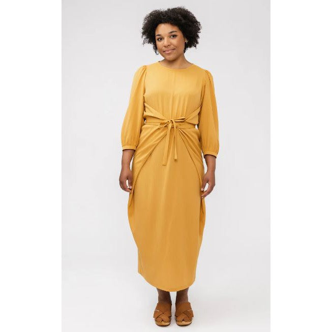 Lilja is a versatile and unique wrap garment with three length and sleeve variations and two neckline options included in the pattern packet. Mix and match either the ankle-length, pinafore dress, or blouse with bohemian 3/4 length puff sleeves or go sleeveless. There are also two neckline options to choose from; a square or a round or be adventurous and combine the two.