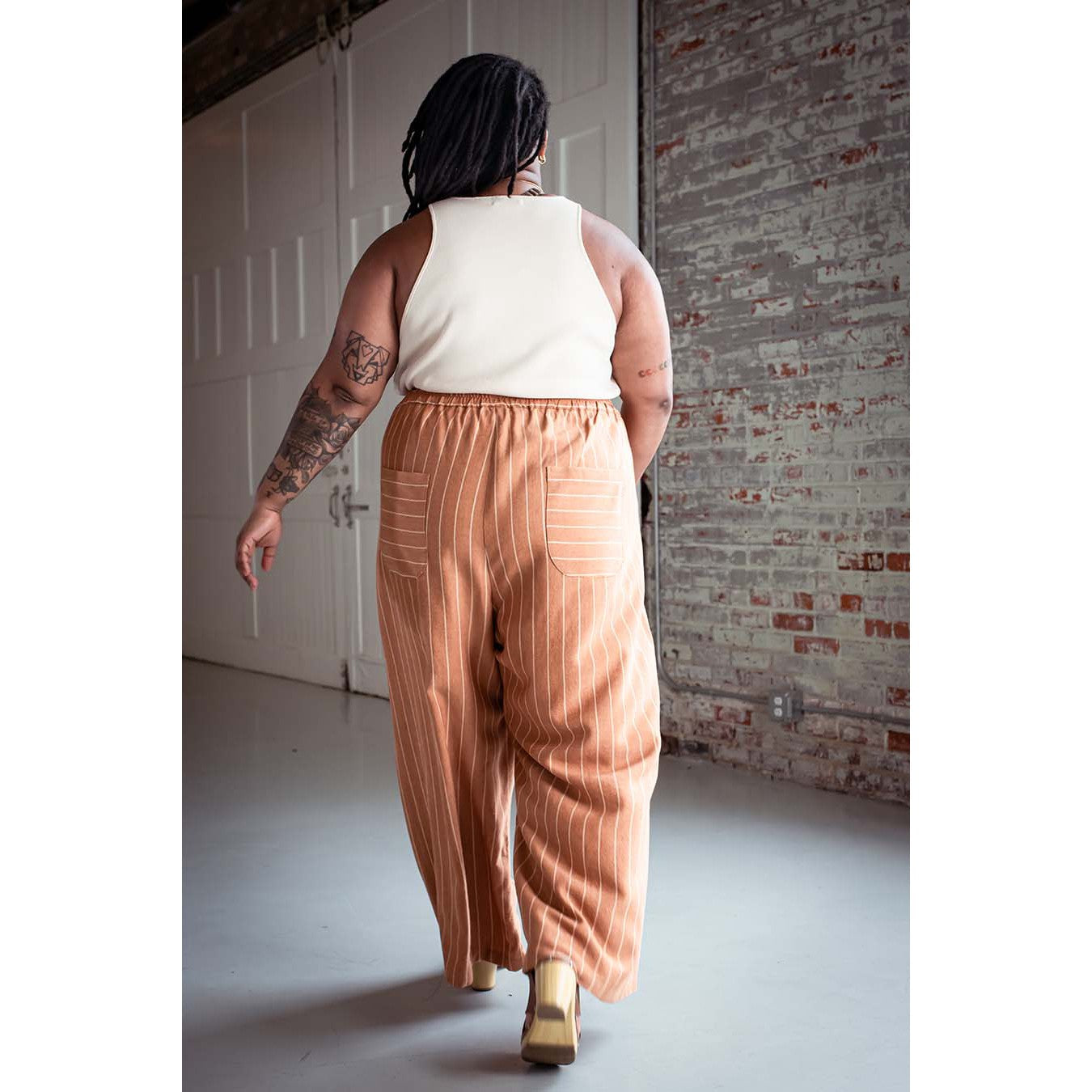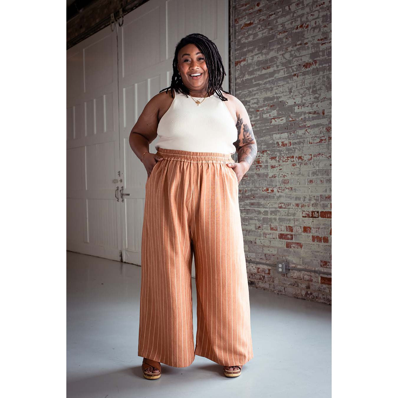 Featuring an elastic waist for maximum comfort the Chanterelle is an all-season wardrobe staple. Choose from wide leg, barrel leg or shorts and add a little style to your collection! Inset pockets and optional patch pockets add function to form and complete the look.