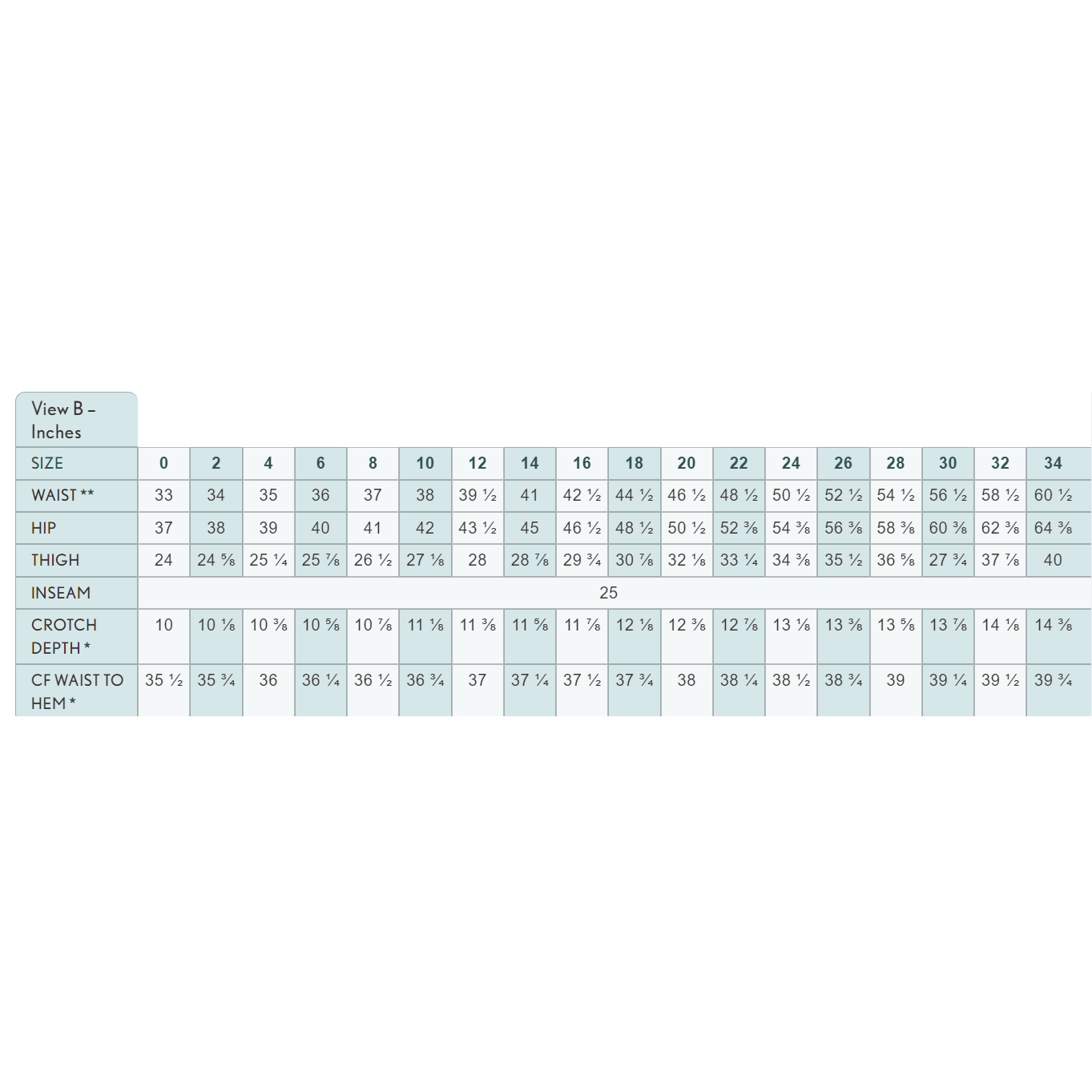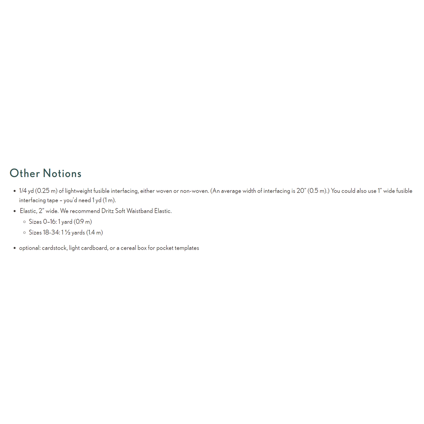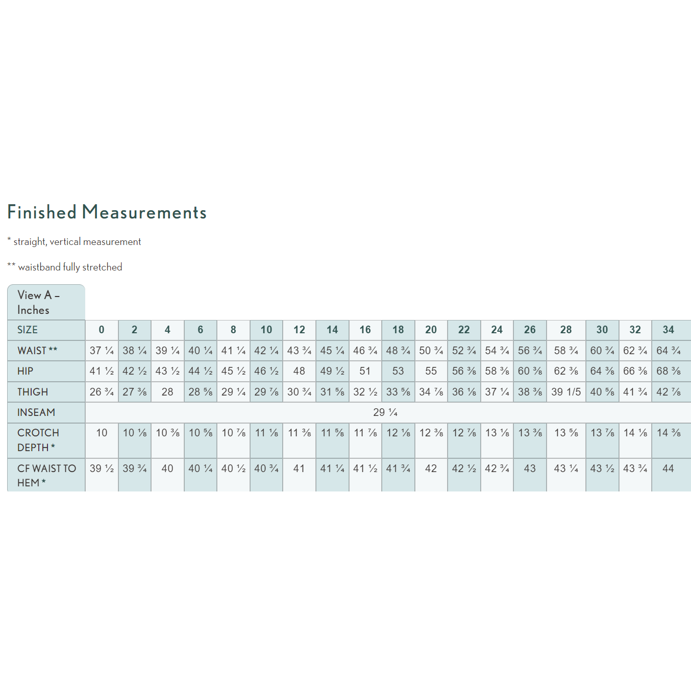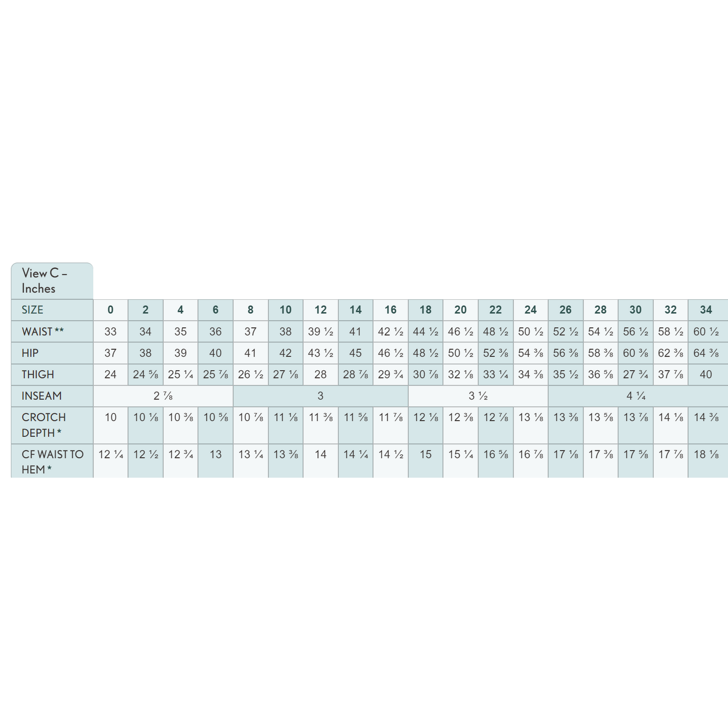 Sizes 22-34, 44" wide = 3 yards