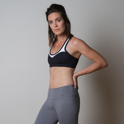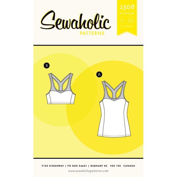 Sew a sports bra or tank top that looks professionally made, with no serger required! The Dunbar Top or Sports Bra is fully lined with a powernet shelf bra that includes pockets for optional padding or removable bra cups. A racer-back style, contrast seaming and edges finished with binding add a beautiful finishing touch.
