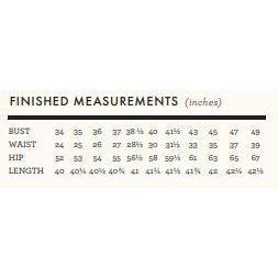 Sizes: 0-20 included; Bust: 30"- 45", Waist: 24" - 39"