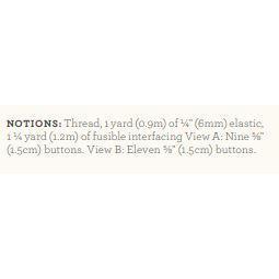 Recommended Fabrics: Lightweight woven fabrics such as cotton voile or lawn, swiss dot, rayon challis, crepe, charmeuse. Allow extra fabric to match stripes, plaids or one-way designs.
