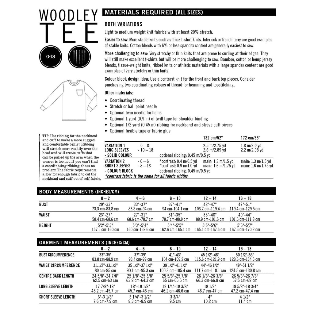 Thread Theory Woodley Tee Women's Sizing Paper Pattern