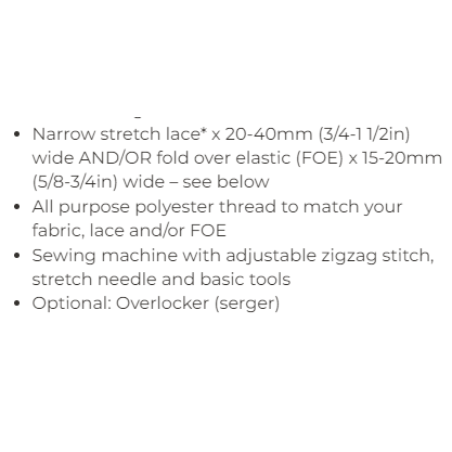 Recommended Fabrics: Light- to medium-weight stretch knit fabric with 40-60% 4-way stretch and good recovery, such as jersey, stretch mesh, stretch velvet. A small piece of cotton jersey, bamboo jersey, or similar fabric with natural fiber content are all suitable options for the crotch lining.