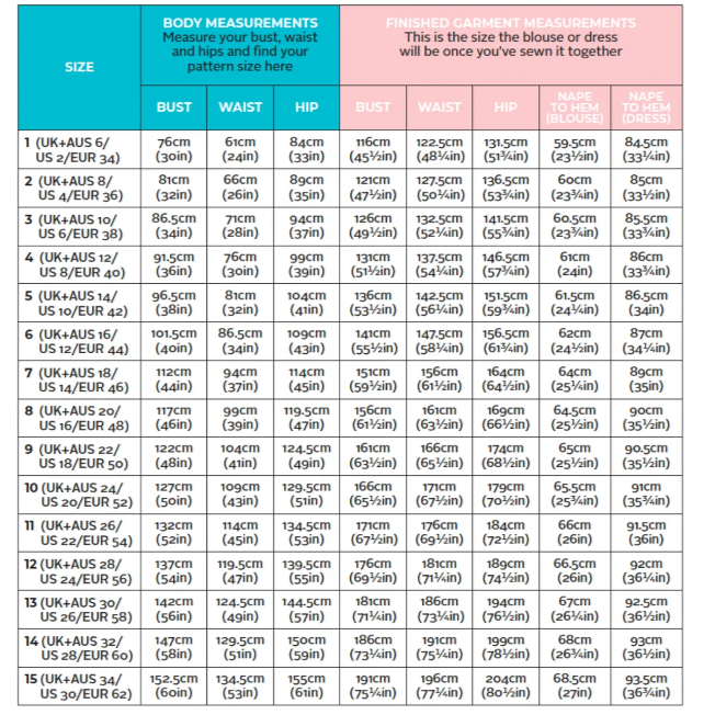 Sizes: 2-30 included; Bust: 30" - 60", Waist: 24" 53"