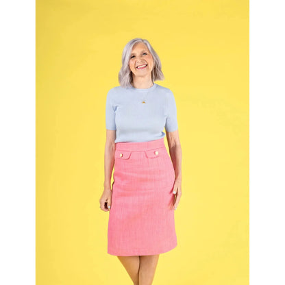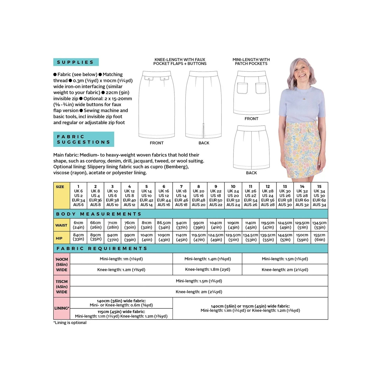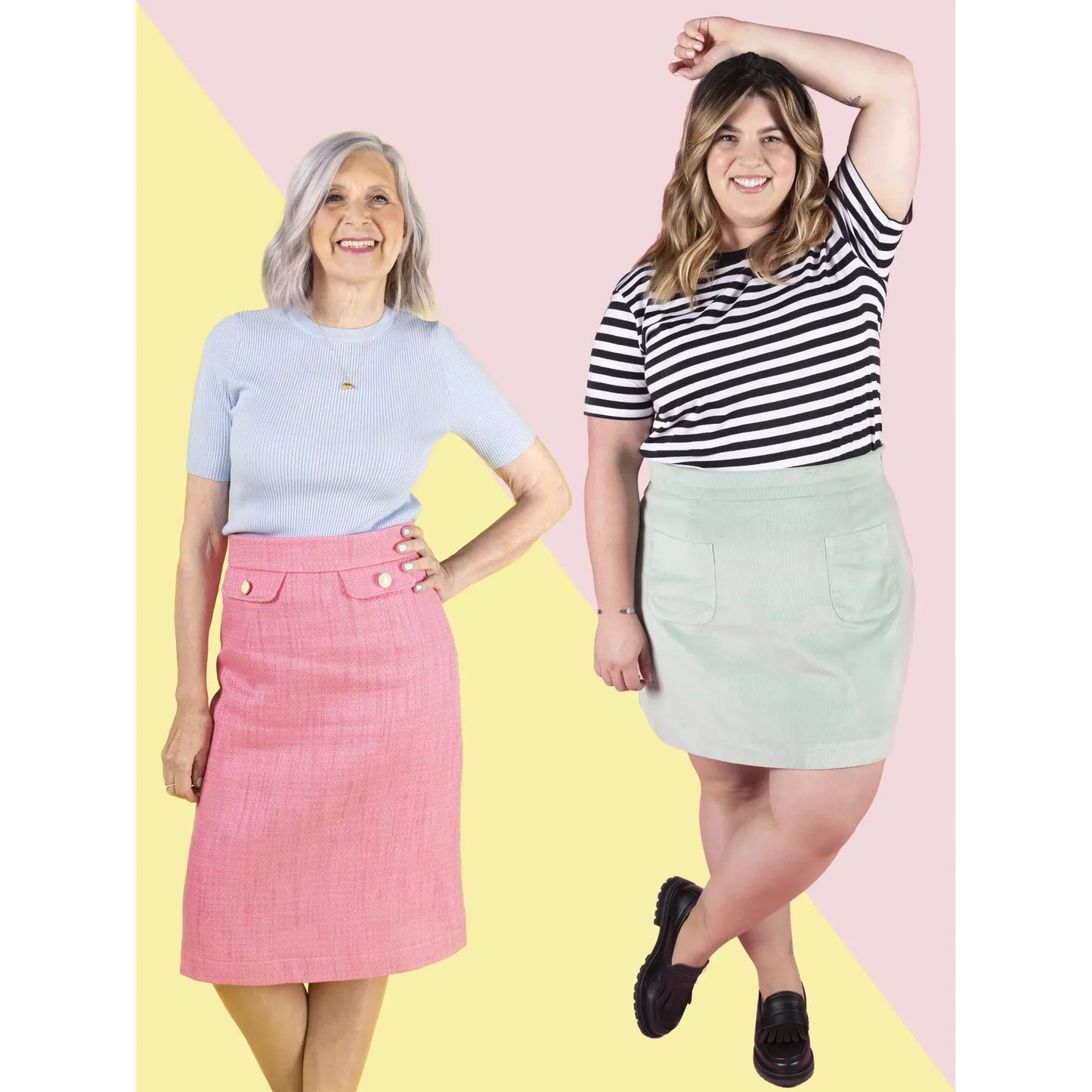 The Ramona skirt is the perfect business casual skirt of your dreams with two length options: pencil and mini. The pattern will teach you how to insert an invisible zipper and can be sewn with front patch pockets or neat faux flaps.