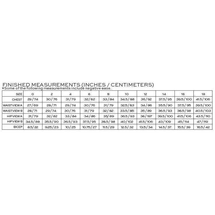 Sizes: 0-18  included; Bust: 32" - 44.5", Waist 26" - 38.5"