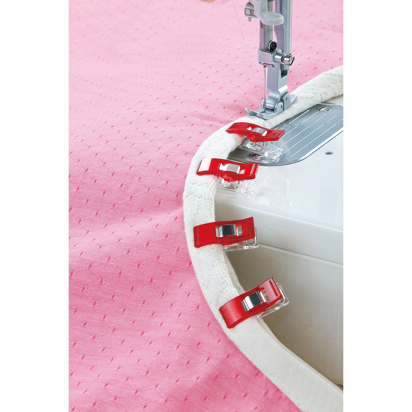 Wonder Clips are a great alternative to pins, especially when working with vinyls and heavy weight fabrics. They have a great holding capacity for many crafts with a wide opening, guide scale and flat black for easy feeding to the presser foot.